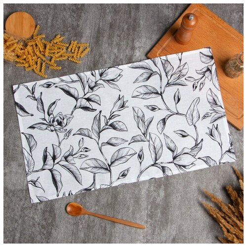 Полотенце Доляна Plant leaves 35х60 см, 100% хлопок, рогожка 164 г/м2