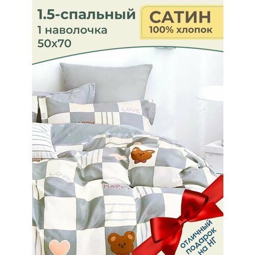 Постельное бельё Lisleep 1,5 спальное, сатин, наволочки 70х70