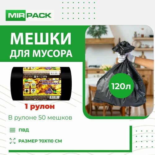 "Экономка" 120 литров, в рулоне 50 штук, ПВД, размер 70*110, черные, 1рулон