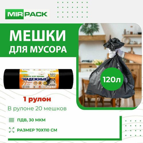 "Надежные" 120 литров, в рулоне 20 штук, ПВД, 30 мкм, размер 70*110, черные, 1рулон