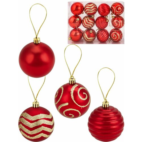 Шары елочные золотая сказка, набор 6 штук, пластик, 8 см, красные (глянец, матовый, глиттер), 590873 (цена за 1 ед. товара)