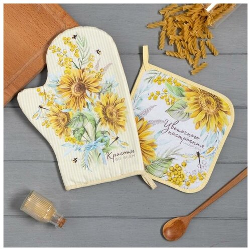 Этель Набор кухонный «Красоты во всем» варежка-прихватка 20х28см, прихватка 19х19см,100% хлопок