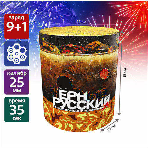 Комбинированный фейерверк "Черный русский" : 9 залпов 1" + фонтан
