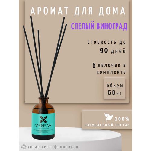 Диффузор для дома, ароматизатор с палочками VENEW "Спелый виноград"