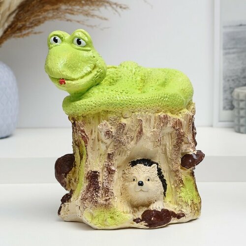 Фигура "Змея на пне" зеленое яблоко, 22х20см