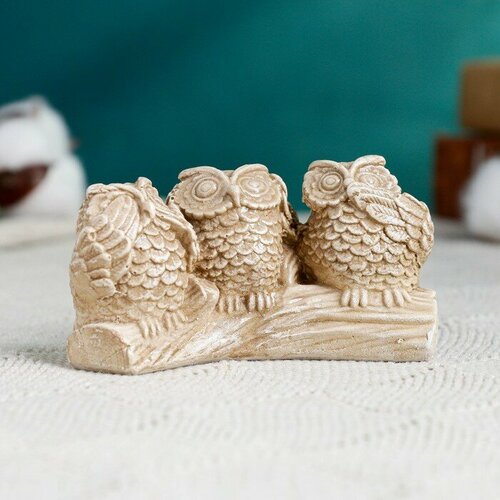 Фигура "Три совы на жердочке" коричневая, 10х6х5см
