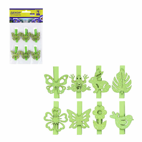 INBLOOM Декор на прищепке, 5см, МДФ, 8 дизайнов, 8 штук