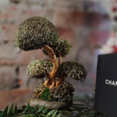 Исландский мох, Мох живой + дерево искусственное интерьерное / Подарок директору, бонсай, декор для дома