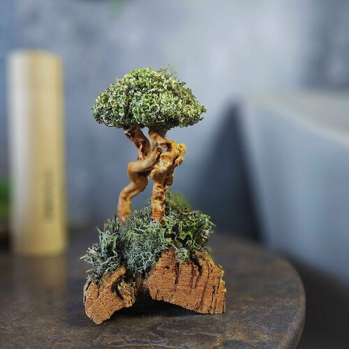 Цетрария дерево, бонсай декоративный 25 см / Пышное искуственное дерево с живым мхом