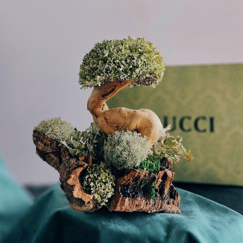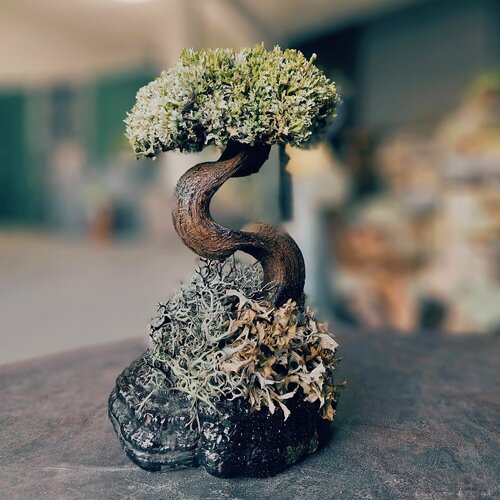 Бонсай дерево из исландского мха цетрарии / Декор для дома и удивительный подарок