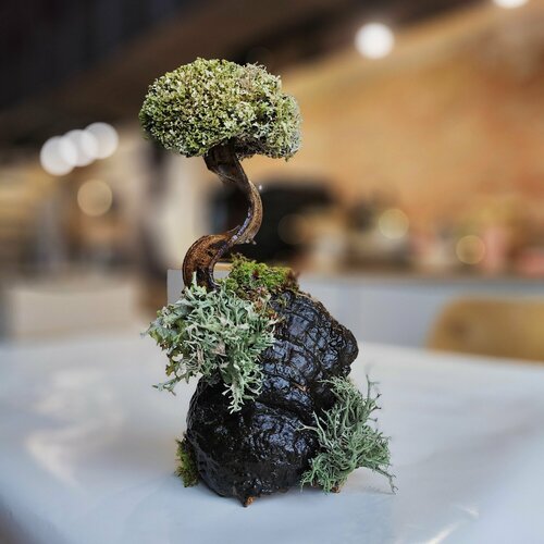Дерево бонсай из исландского мха цетрарии / Необычный подарок, стильный декор