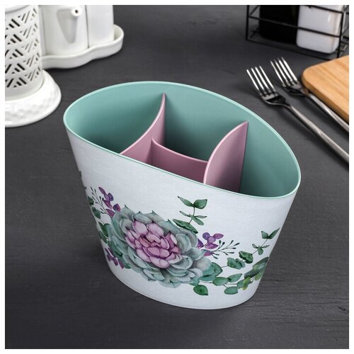 Подставка для столовых приборов 16х11х20см пластик (чайная роза)