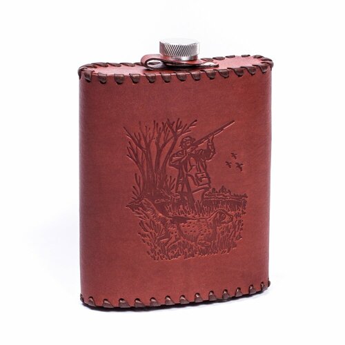 Фляга походная "Охота" 0,56 л в чехле из натуральной кожи