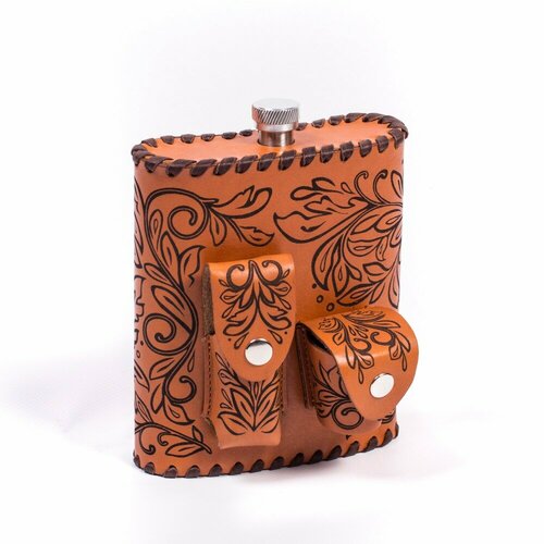 Фляга походная в оплетке из натуральной кожи "Ornament"