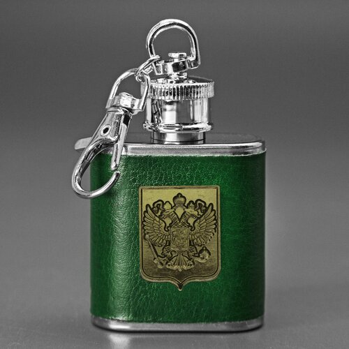 Фляга-брелок "Герб России" 30 мл / Фляжка из нержавеющей стали армейская, подарочная, походная / Зеленый