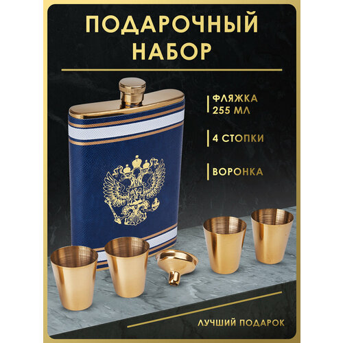 Подарочный набор для спиртных напитков и воды: фляга (850мл) со стаканчиками FL32-1KN6, нержавеющая сталь, чехол экокожа