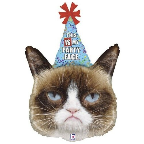 Шар фольгированный 36' "Сердитая кошка в колпаке", фигура, 1 шт.