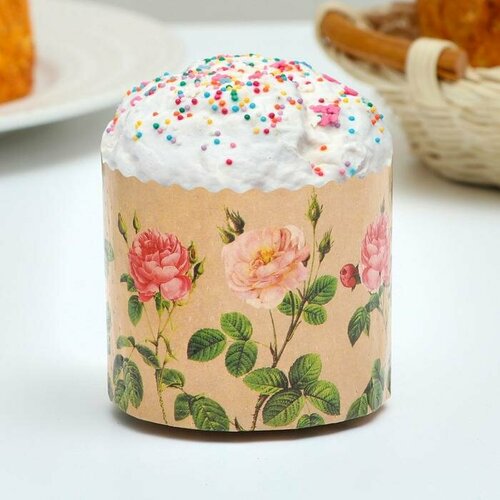 Форма бумажная для кулича "Шиповник" 90 x 90 мм, 20 шт.