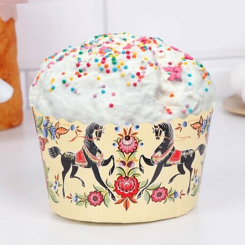 Форма бумажная для кекса, маффинов и кулича "Хохлома микс" 134 x 100 мм, 4181654