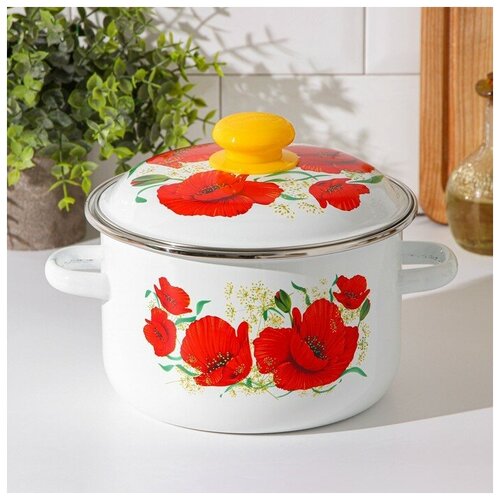 Кастрюля «Маки», 3 л, эмалированная крышка, индукция, цвет белый