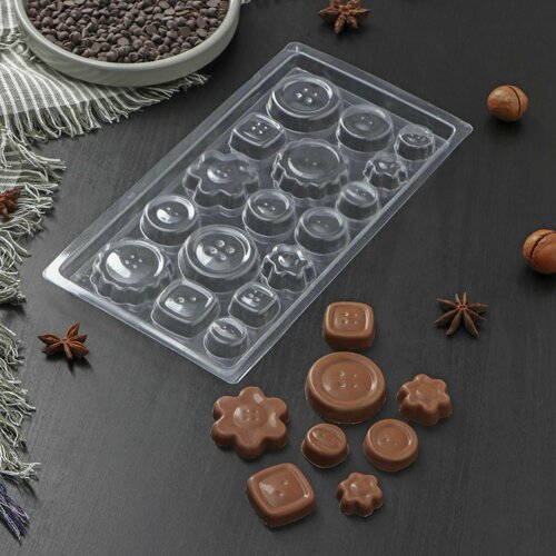 Форма для шоколада и конфет Пуговки, 22х11 см, 17 ячеек, цвет прозрачный