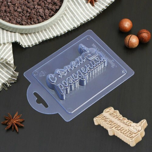 Форма для шоколада пластиковая С Днём Рождения Тортик, 9,5х5,6х1,5 см, цвет прозрачный