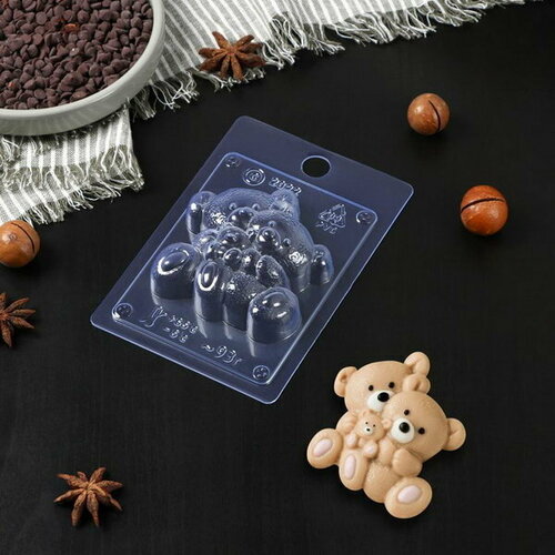 Форма для шоколада и конфет пластиковая "Объятия мишек", 7.5x8.2x2.9 см, цвет прозрачный