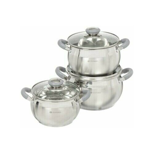 Набор посуды нержавеющая сталь, 6 предметов, кастрюли 2.1, 2.9, 3.9 л, Daniks, Нара, GS-01413-6PC-2