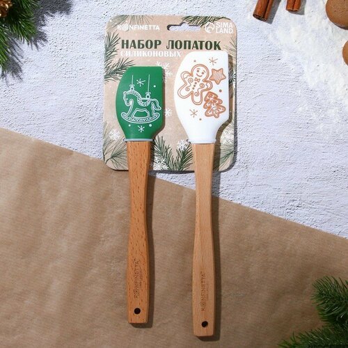 Набор силиконовых лопаток «Новогоднее чудо», 2 шт в наборе (26х5 см, 23.3х4.3 см)