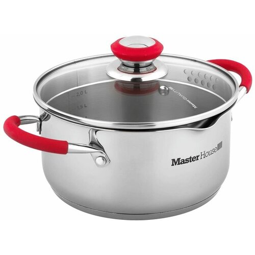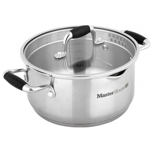 Кастрюля нержавеющая Master House Grigio-3,0 со стеклянной крышкой, силиконовыми ручками, объемом 3 литра.