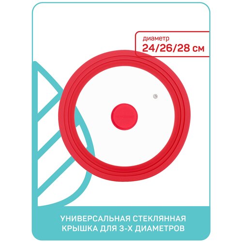 Крышка стеклянная с силиконовым ободом Моника-24/26/28 красная