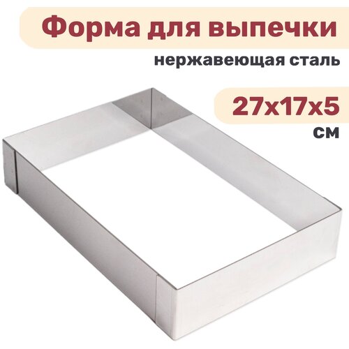 Форма прямоугольная для выпечки, рамка для десертов 27х17х5 см нержавеющая сталь 1 мм