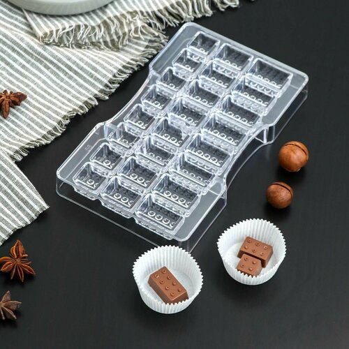 Форма для шоколада и конфет Лего, 24 ячейки, 20х12х2,5 см, глубина 1,5 см