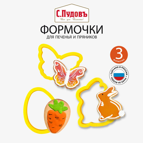 Набор формочек для печенья (Заяц, Бабочка, Яйцо) С. Пудовъ, пленка, 3 шт