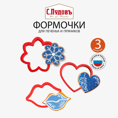 Набор формочек для печенья (Сердце, Цветок, Губы) С. Пудовъ, 3 шт