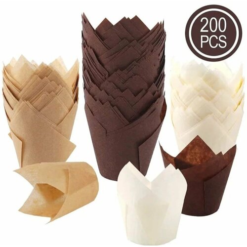 Бумажная форма для кексов и маффинов Тюльпан 200 штук