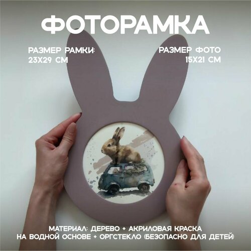 Рамка для фото 15х21 деревянная, фоторамка Зайчик для картины, постера, вышивки