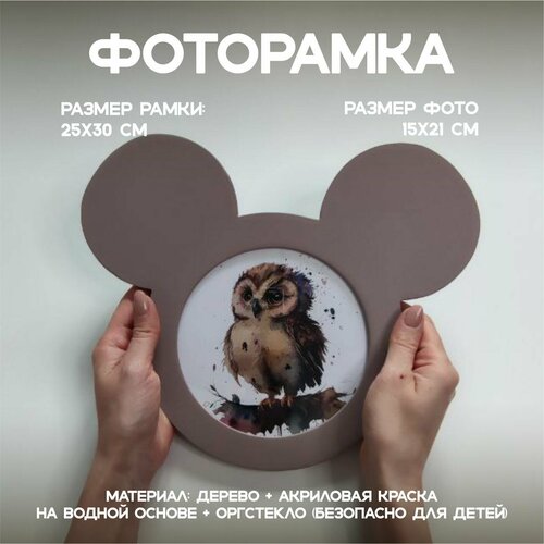 Рамка для фото 15х21 деревянная, фоторамка Мышка для картины, постера, вышивки