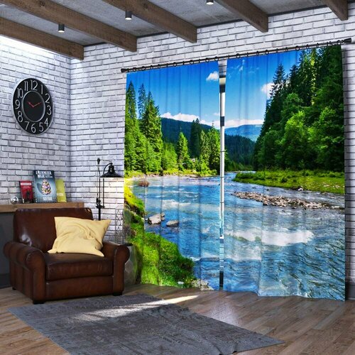 Фотошторы Мост в горы Ш150xВ290 см. 2шт. Атлас на тесьме