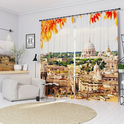 Фотошторы Рим, Св. Петр и вид на горизонт. Италия Ш150xВ275 см. 2шт. Блэкаут на тесьме