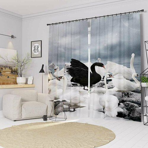 Фотошторы Черный лебедь Ш150xВ205 см. 2шт. Блэкаут на тесьме