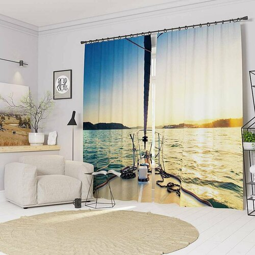 Фотошторы Закат и яхта Ш150xВ220 см. 2шт. Габардин на тесьме