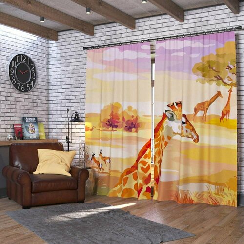 Фотошторы В саванне Ш150xВ295 см. 2шт. Блэкаут на тесьме