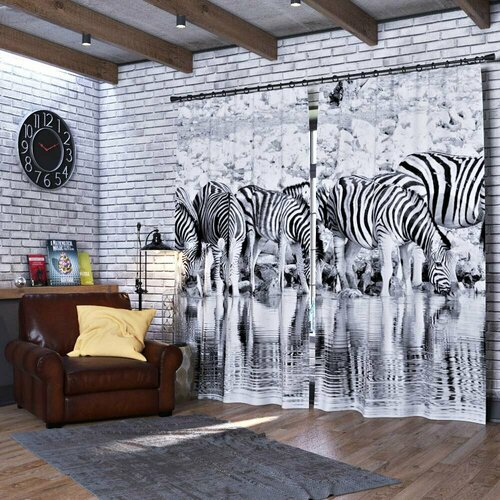 Фотошторы Водопой в Этоше Ш150xВ270 см. 2шт. Габардин на тесьме