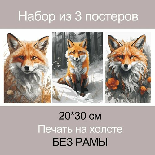 Набор постеров на холсте "Лиса" 3 штуки 20*30 см без рамы