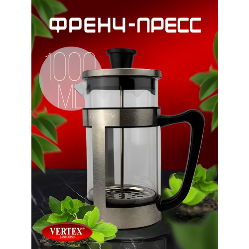 бесцветный, серебристыйФренч-пресс от VERTEX – отличное решение для кухни и дома. Изготовленный из высококачественной нержавеющей стали и термостойкого стекла, пресс френч не царапается и долго держит тепло, позволяя чаю, кофе, фруктовым и ягодным напиткам полностью раскрыться. Заварочный френч пресс от Вертекс можно использовать как кофейник, чайник, заварник для кофе или чая. Объем 350, 600, 800 и 1000 мл, хватит для чаепития большой компании и в кругу семьи. Металлический поршень для френч-пресса, выполненный по технологи “press-up”, обеспечивает равномерную циркуляцию воды в заварочнике, благодаря чему заварка для чая лучше раскрывается, а чай всегда будет вкусным и насыщенным. Стеклянная колба от френч-пресса термостойкая и легко моется. Изящная пластиковая ручка не нагревается. Стильный френч-пресс от Вертекс с классическим дизайном идеально подойдет для любой кухни и будет гармонично сочетаться с посудой для кофе и чая на вашем столе. Это отличный подарок коллегам, друзьям, любимым близким, на день рождения маме, бабушке, же