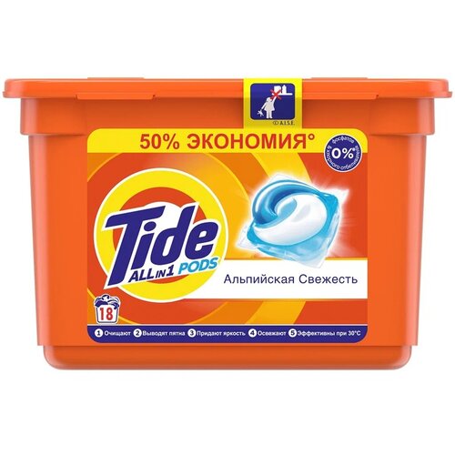 Tide капсулы Все в 1 PODs Альпийская Cвежесть, контейнер, 18 шт., 0.52 кг