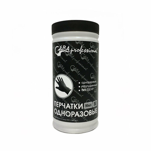 Gera Professional, Перчатки парикмахерские, латекс цвет черный, размер M 50 шт/уп