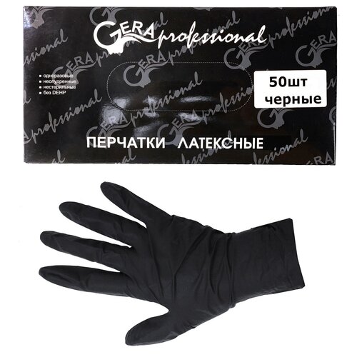 Цены на Gera Professional, Перчатки латексные, парикмахерские, размер S, 50 шт/уп черный в г. Москва