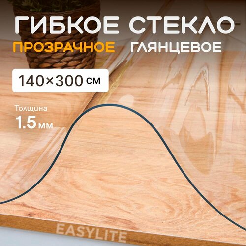 Гибкое стекло на стол 140х70 0.3мм, прозрачная скатерть на стол, жидкое стекло на стол, силиконовая скатерть
